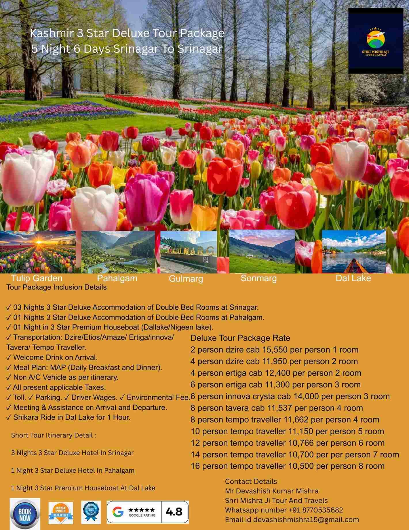 Kashmir Deluxe Tour Package 5 Night 6 Days Ex Srinagar